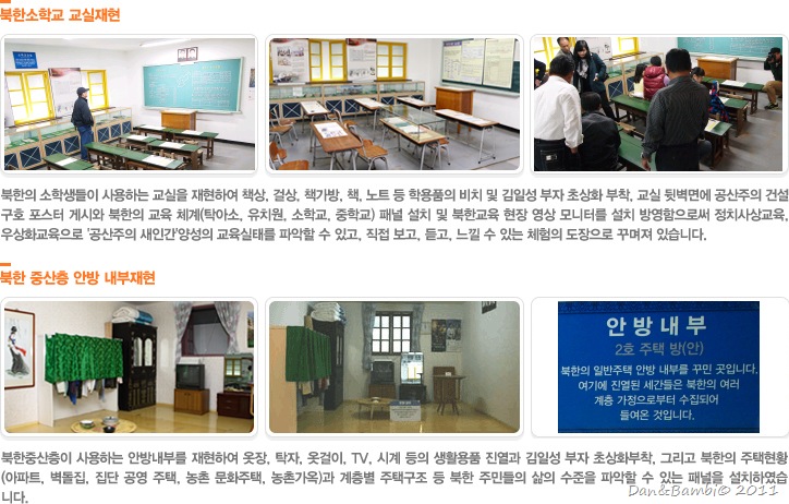 烏頭山統一展望台在首爾北方的坡州市,建在海拔118公尺的烏頭山上,鄰漢江與臨津江,這裡最大的特色是上了展望台可以看到北韓的樣板屋喔!!運氣好的話,透過裡面的高倍望遠鏡,可以看到北韓人喔!這樣說好像人家是動物,不太禮貌,不過畢竟北韓這麼神秘,大家應該還是會很想看的吧!!也由於展望台已經位於南韓的最北方,其實這邊真的比首爾冷(斑比去的時候大概也是10月多,那邊已經冷到2-5度了),所以展望台的開放時間也有隨著季節調整,大家有意前往的話可以參考一下!!