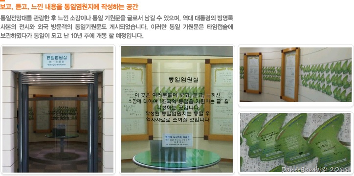 提供給遊客在參觀後寫下自己的感想與祈願,內部還展出了歷任總統的相關文書,其他外國元首寫下的祝福。會將這些統一的願望文收集進時光膠囊中保存,預計南北韓統一10年之後,將會公開。