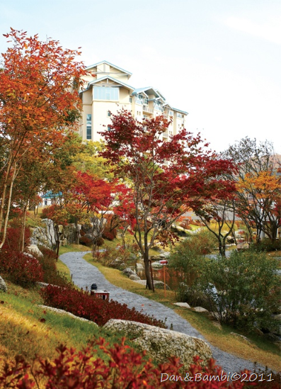 LG集團的Konjiam度假村(昆池岩)位在首爾市東南方的廣州市,從2008年的冬天開始營運,算是還蠻新的度假村囉!標榜從江南開車過來只要40分鐘,冬天的時候是非常熱門的滑雪勝地!事實上,Konjiam渡假村的規劃是成為一個四季都能讓人們放鬆身心的休憩地,因此除了首爾近郊最大的滑雪場以外,園區內還有美不勝收的生態溪流,植物園,葡萄酒窖,高爾夫球場, 室內外游泳池及水療SPA等各項設施,讓大家不管什麼季節來,都可以享受這裡的美景,洗滌城市的塵囂:)