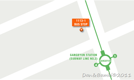 - 2號線江邊站(Gangbyun)4號出口搭乘1113-1