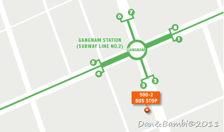 3. 2 號線江南站(Gangnam)3號出口搭乘500-2