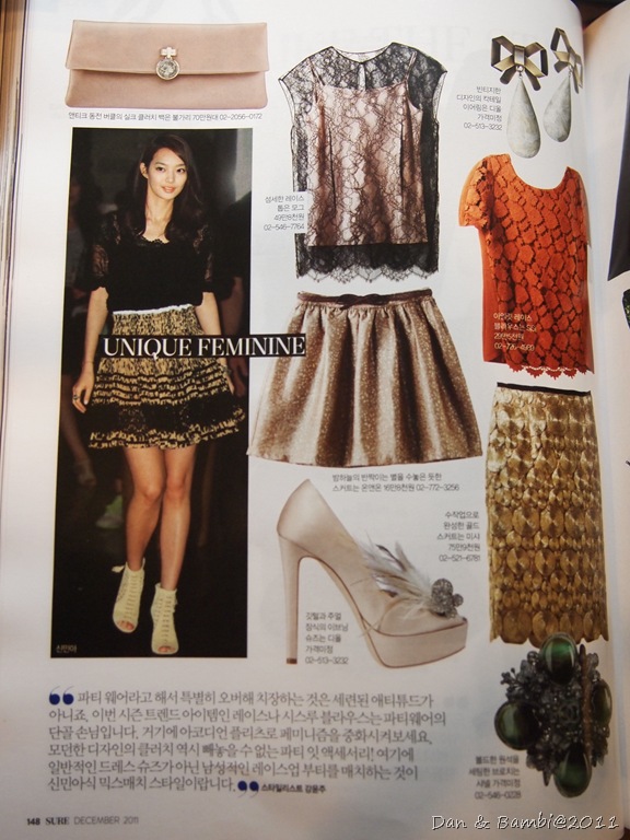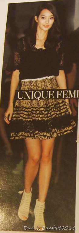 這次雜誌介紹的是申敏兒有點宮廷公主風的打扮,主要的單品為特別花紋簍空上衣搭配高腰蓬蓬裙。