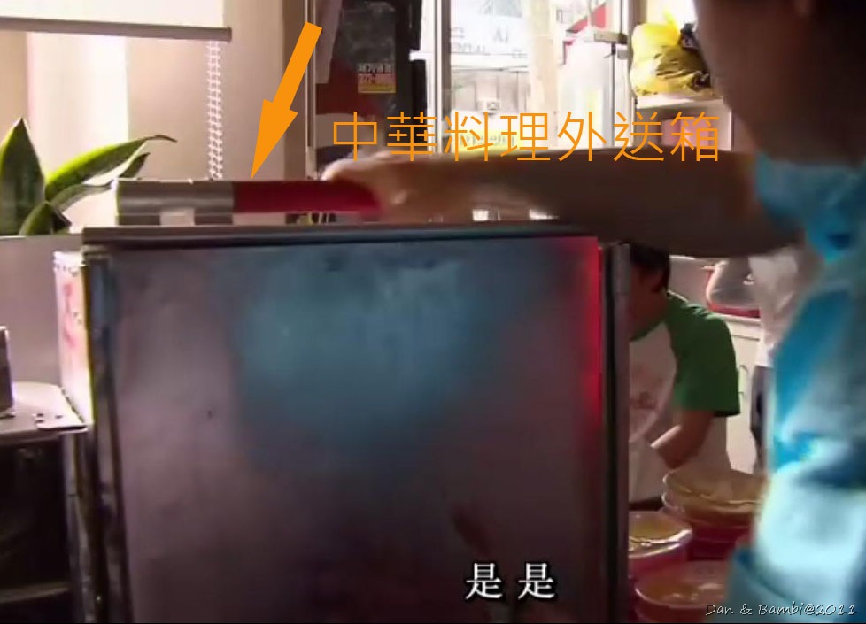 打電話的時候,點餐後和店員說了家裡地址,大約半個小時左右就送來了,中國餐館的外送箱也都長的一個樣,如右圖,鐵製的有保溫效果,而且麵碗和盤子都不是拋棄式的,大家吃完後要放在門口,店員會再來收走。這點真的很特別,尤其天冷的時候,老闆居然要跑兩趟,真辛苦啊!!