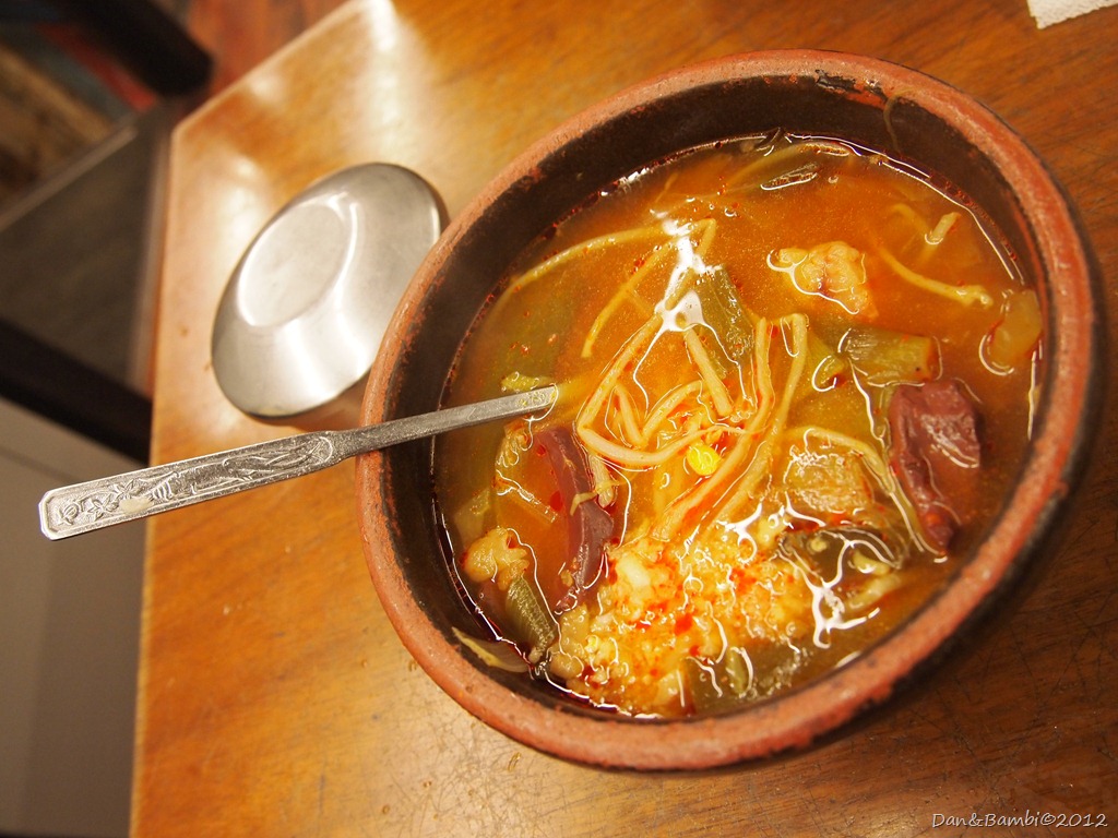 原本以為是牛肉湯飯(明明韓文中文寫的都是牛肉湯飯!!!),但撈了半天竟然只看到之前從朋友口中聽說的牛血…囧rz